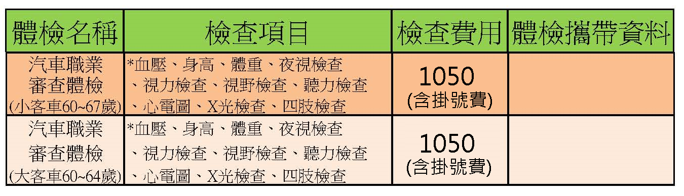 公告 60歲以上職業駕駛汽車體檢說明